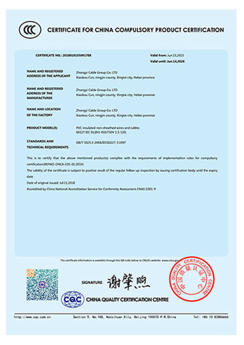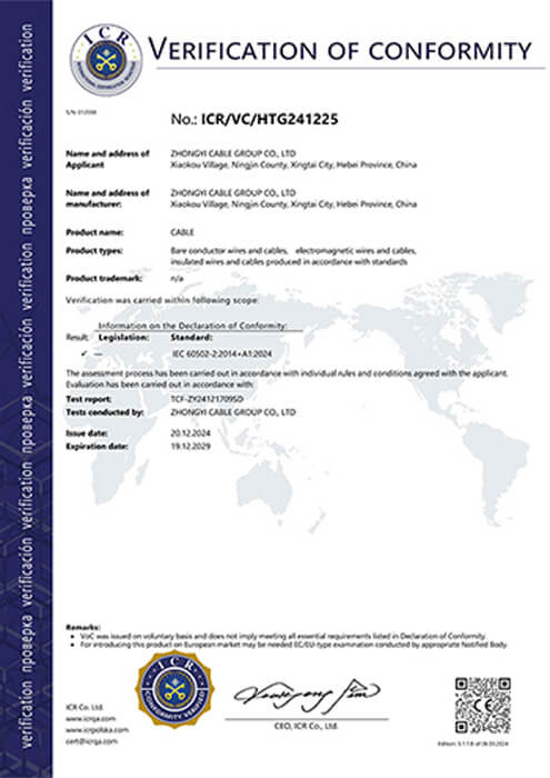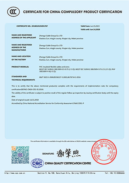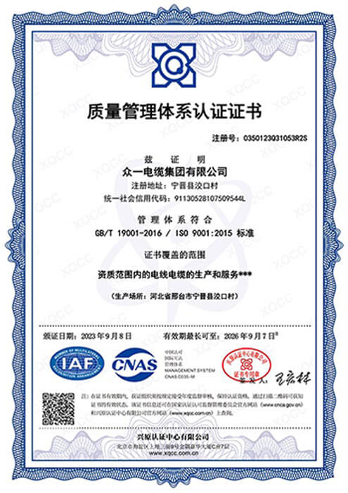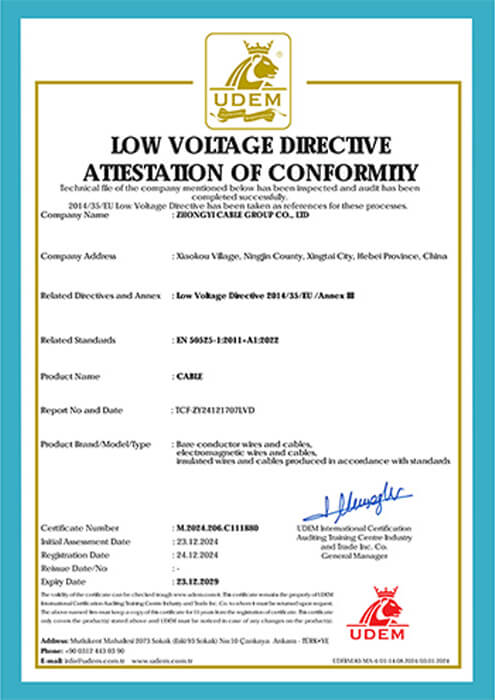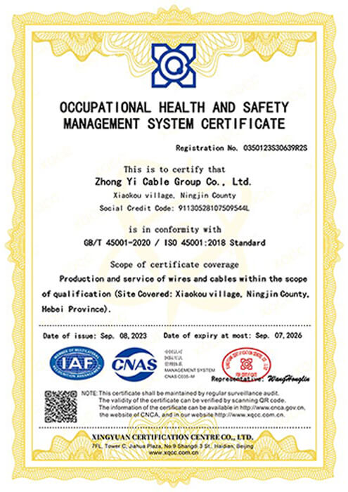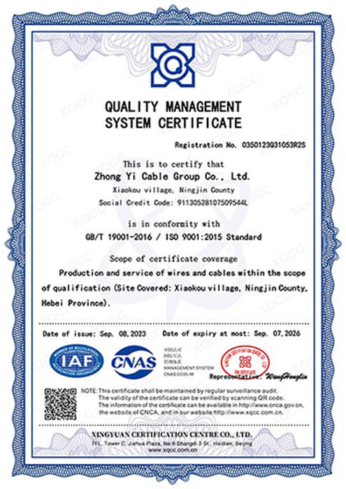 As a leading cable manufacturer in Hebei Province, Zhongyi holds key certifications including ISO 9001, CE, IEC, CCC, and China’s national industrial product license, and has earned honors such as “China’s High-Quality Wire and Cable” and “Hebei Famous Brand.”